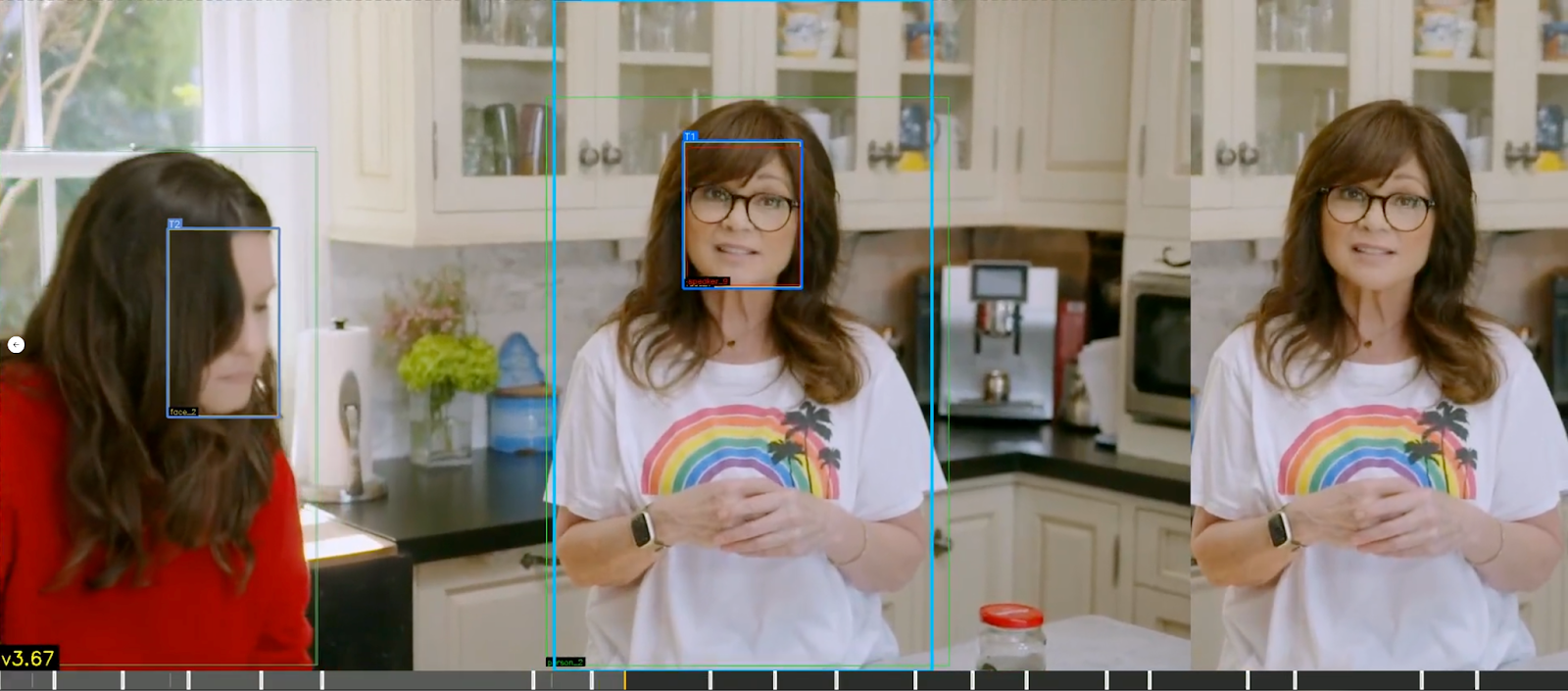 - Subject Intelligence: Detected subjects are ranked by prominence and a primary follow target is assigned per frame. The scene is then divided into segments at subject transitions, ensuring the crop never jumps mid-segment.
